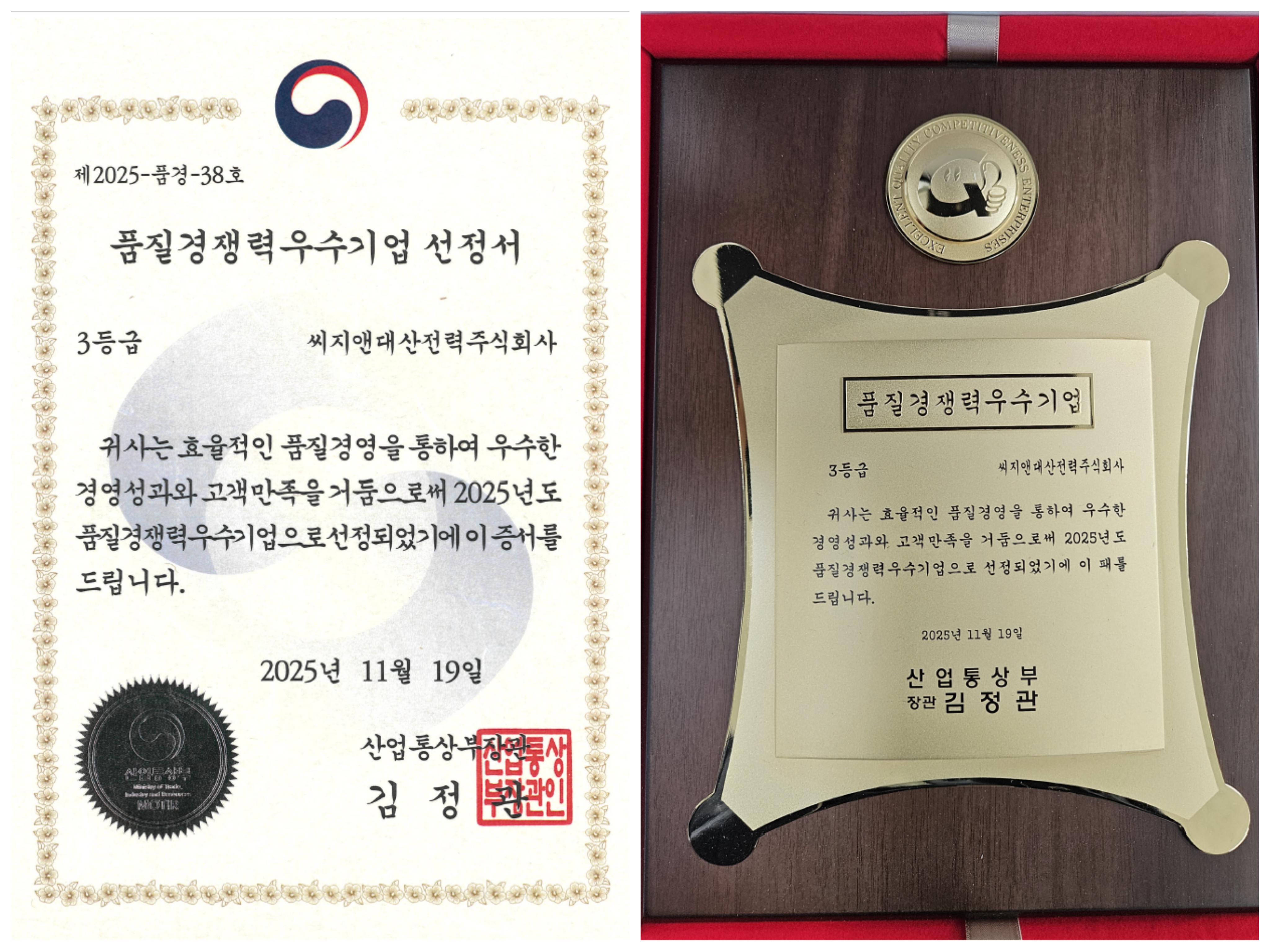 該獎項是韓國政府官方認證的頂級質量管理榮譽,具有非常高的權威性與行業代表性。這也是韓國公司繼2023年斬獲韓國總統質量獎后,再度摘得韓國質量體系國家級大獎,標志著中廣核燃機發電的質量管理水平持續獲得國際主流市場高度認可,為全球燃機發電行業樹立了質量標桿。