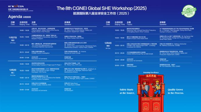 全球安全工作坊“Global SHE Workshop”是中廣核能源國際面向全球所有關(guān)鍵崗位成員的共商共建共享平臺,旨在開展公司安質(zhì)環(huán)領(lǐng)域?qū)I(yè)培訓(xùn)、分享安質(zhì)環(huán)良好實踐和經(jīng)驗、提升安質(zhì)環(huán)管理能力,以及總結(jié)當(dāng)年度安質(zhì)環(huán)工作、共商下一年度工作方向的專業(yè)平臺。活動通常于每年11-12月份舉行,會議語言為英語。通過選擇有代表性的關(guān)鍵崗位成員深度參與和研討交流,確保管理計劃的制定有廣泛的參與性和高度的前瞻性,也為這些關(guān)鍵崗位去落地執(zhí)行計劃做好鋪墊。